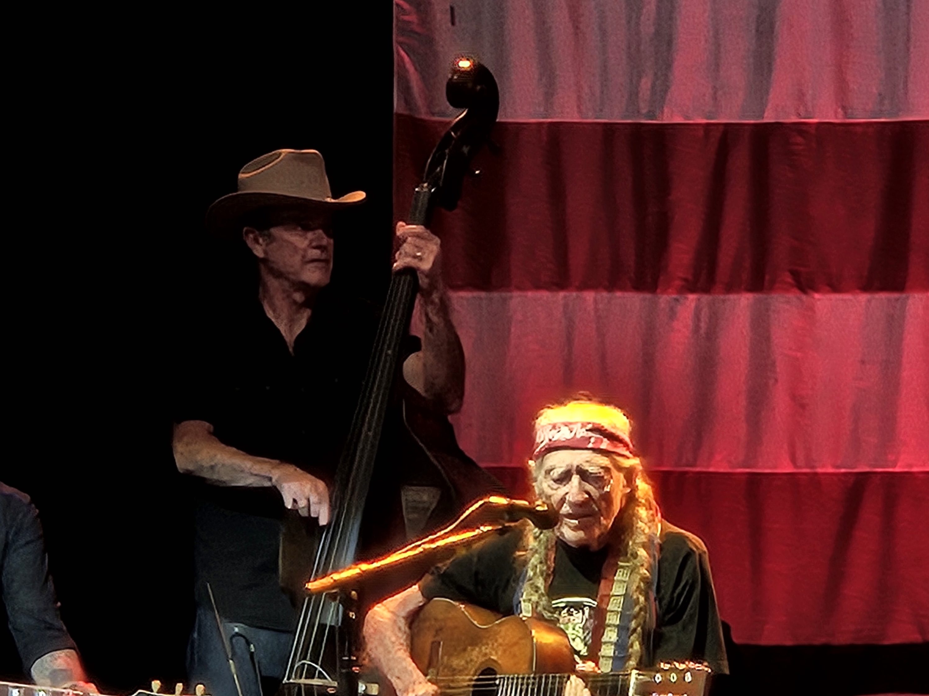 Sale a tocar Willie Nelson. No parece tener aire. El esfuerzo que debe ser para el a los 91 estar en escenario me conmueve. Parece quedarse sin aire. Previo a esto, canceló un par de shows ya que se habia enfermado. Detrás de el se proyecta una enorme bandera de los Estados Unidos. Le acompaña su hijo, Lukas Nelson. Y su banda es grande y la llama «Family» .Curioso contraste con Dylan, quien, aún con su hijo Jakob participando en otro escenario en la misma localidad, no lo llama para tocar algún tema. A mitad de su setlist me levanto, quiero escapar antes de que los miles de invitados salgan del festival. Veo a dos chicas adolescentes bronceadas tiradas en el pasto junto a un camino que lleva al estacionamiento. Sus ojos son como platillos y miran fijo al cielo de noche. Están inmóviles, no tienen expresión facial. Estamos en territorio rural pero no hay estrellas. En camino de vuelta al Airbnb la ruta se hace oscura y traicionera, pienso en la música que había acabado de escuchar y me agarra un nudo en la garganta: