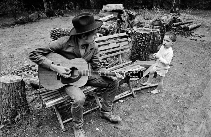 «Estaba en Woodstock y estaba adquiriendo un gran grado de notoriedad por no hacer nada, luego tuve ese accidente de motocicleta que me dejó fuera de servicio. Luego, cuando desperté y recuperé el sentido, me di cuenta de que solo estaba trabajando para todas estas sanguijuelas. Y yo no quería hacer eso. Además, tenía una familia y solo quería ver a mis hijos. También había visto que estaba representando todas esas cosas de las que no sabía nada.»